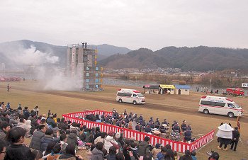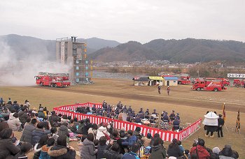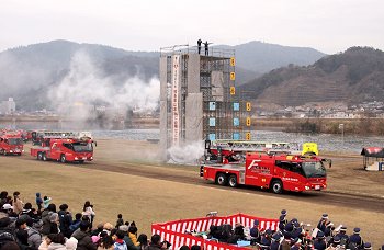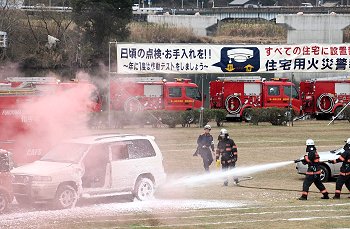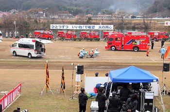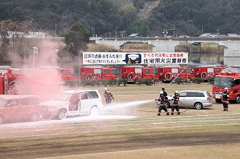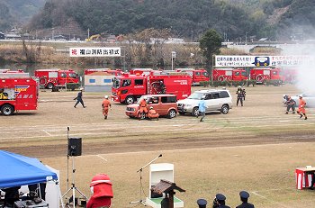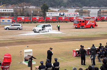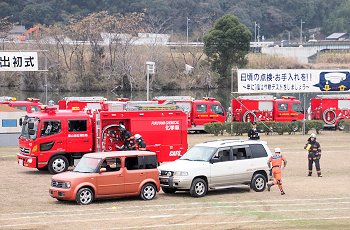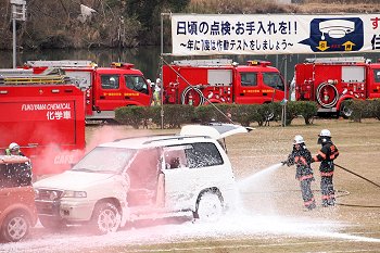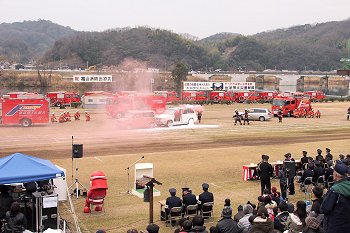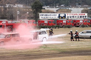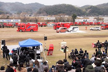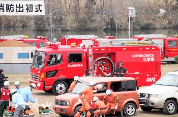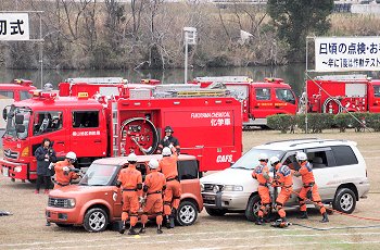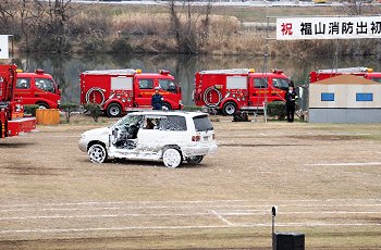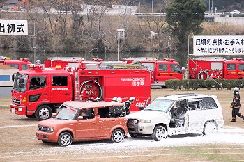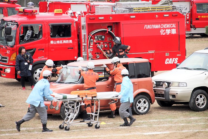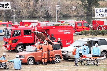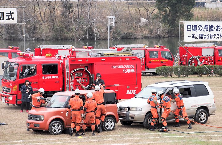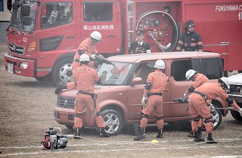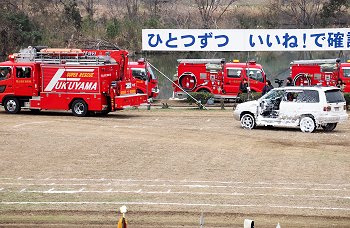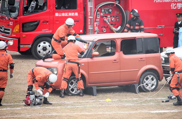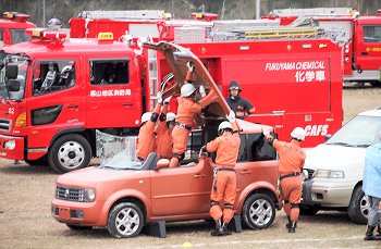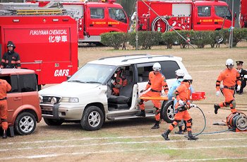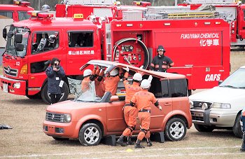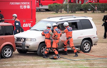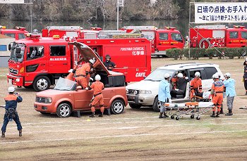 公開訓練の方は、プログラム通り順調に進行で、次は自動車衝突事故発生時の救出訓練ですネ(^.-)☆