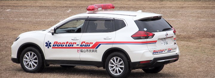 福山市民病院sanは、救命救急センターのモットーである「垣根が低く、フットワークの軽い救急・集中医療の展開」を実践し、いち早く医療スタッフが現場に急行する事を目的とした「機動力」のある乗用車型のドクターカー(ラ