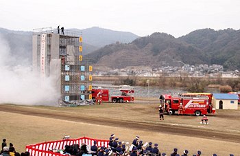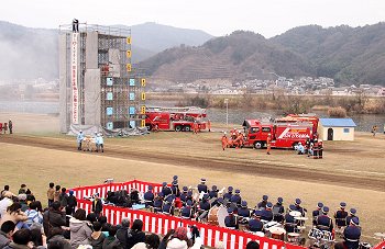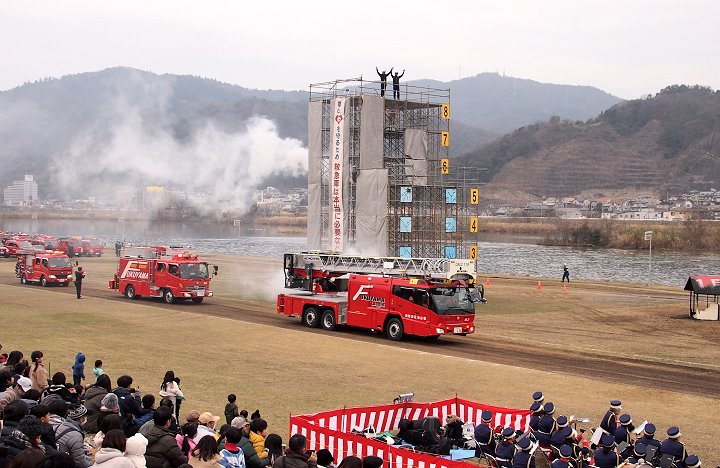 続いて、高層ビルでの火災発生ですから「福山市消防高度救助隊」の出動ですネ(^.-)☆