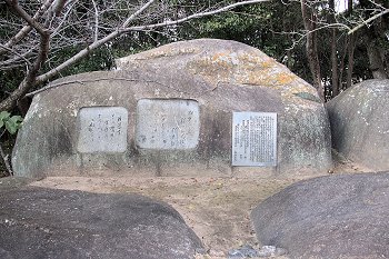 そして、この白華山頂上の中央部には、大きな平らな石があるのですけど、説明の石碑には「百年石」と読むのか否か、良く分かりません(^-^;