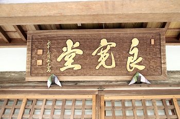 「この建物はもと円通寺へ修行にきた者たちが寝起きする衆寮であった 昔時は数十人の若き修行者が常時いたとのことである 良寛も二十二才の時 遠く玉島から越後の出雲崎へ請せられて光照寺に来た国仙和尚の弟子となり はるばる西国玉島の円通寺にきて この建物で寝起きして修行した 騰々任運の特色ある良寛禅の境地はこゝで生れた 円通寺出身の絶世の高僧のゆかりを以て いまでは良寛堂と呼ばれることになった」