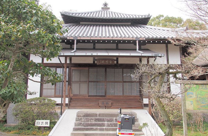 白雲関(坐禅堂)は、良寛が修行した坐禅堂跡地に、良寛堂裏手高所にあった普門閣を1963年に移築したもので、本堂の左手、良寛堂の右手にある。