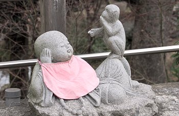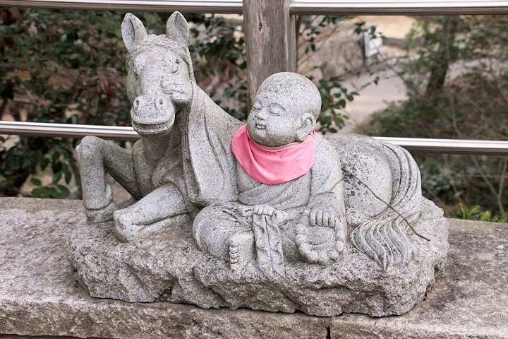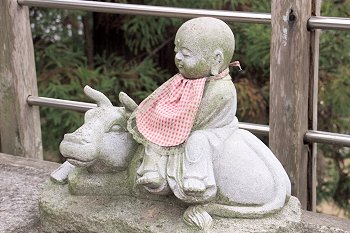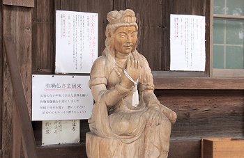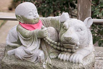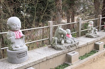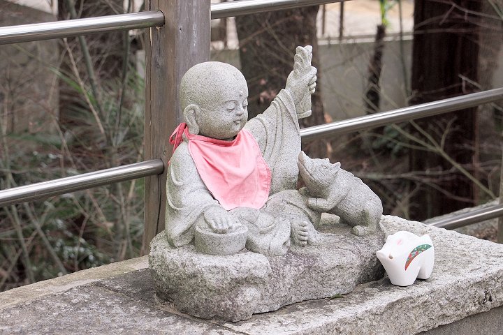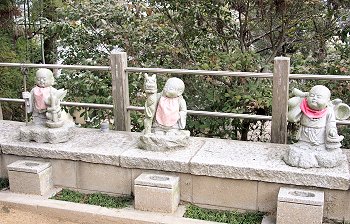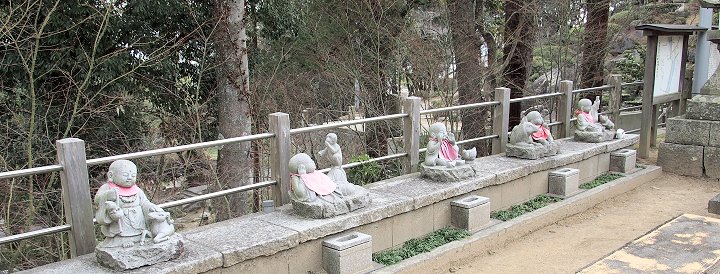 この地蔵は、宝暦10年(1760年)の江戸の大火に出向いて、円通寺の定紋入り高張提灯を掲げて鎮火したということで、火消地蔵とも呼ばれ、火伏せの霊験あらたかな仏とて、倉敷市の文化財に指定されている。第二次大戦の金物供出も逃れたということだ。円通寺には、他にも火難除けの神である秋葉宮があり、1月24日の縁日には大勢の参拝者で賑わう。玉島は人家が密集して、かつて大火で町の大半を失ったことなどから、こうした火除けの神や仏が祀られているものと思われる。