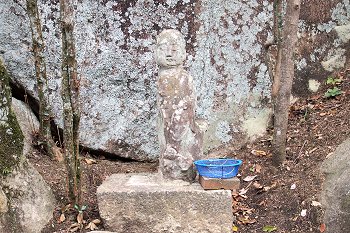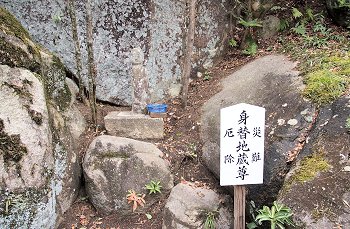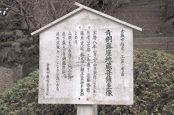 そして、手前には、斜面の大岩の上に造られている「青銅露座地蔵菩薩坐像」の案内板も…