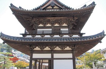 ・楼門 - 文禄3年(1594年)の建築。「楼門」と称するが、建築形式的には「楼門」でなく「二重門」(上層・下層境にも軒の張り出しをつくる)である。