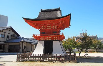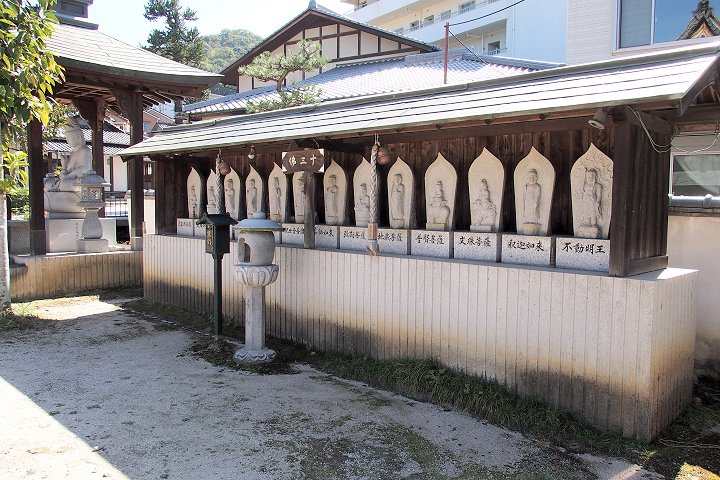 真言宗寺院の不動院は、新日山安国寺と号します。不動院の創建年代等は不詳ながら、平安時代の創建と推定されています。その後足利尊氏・忠義兄弟が国内各地に建立した安国寺として建て直され、室町時代には安芸国守護武田氏の菩提寺として繁栄、武田氏と大内氏との戦乱で焼失したしまった当寺を、安国寺恵瓊が再建したといいます。安国寺恵瓊が関ヶ原の合戦で敗死し、寺運は衰えたものの、入国した福島正則が、自身の祈祷僧宥珍を当寺に入寺させ、不動明王を本尊とした真言宗寺院として不動院と称したといいます(現本尊は薬師如来像)。当寺の本堂(金堂)は、安国寺恵瓊が山口から移建したもので国宝に指定されている他、楼門や鐘楼など数多くの文化財を有し、広島県真言宗教団の別格本山寺院です。