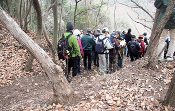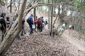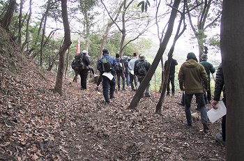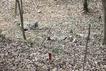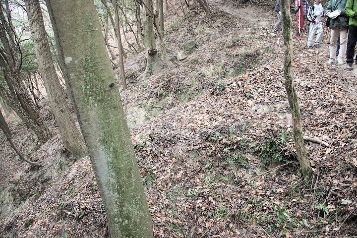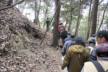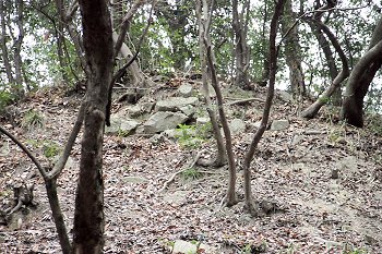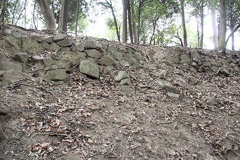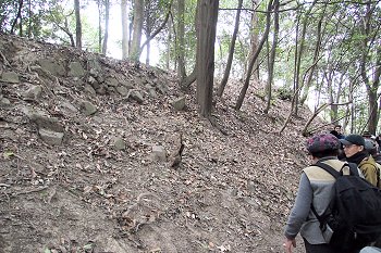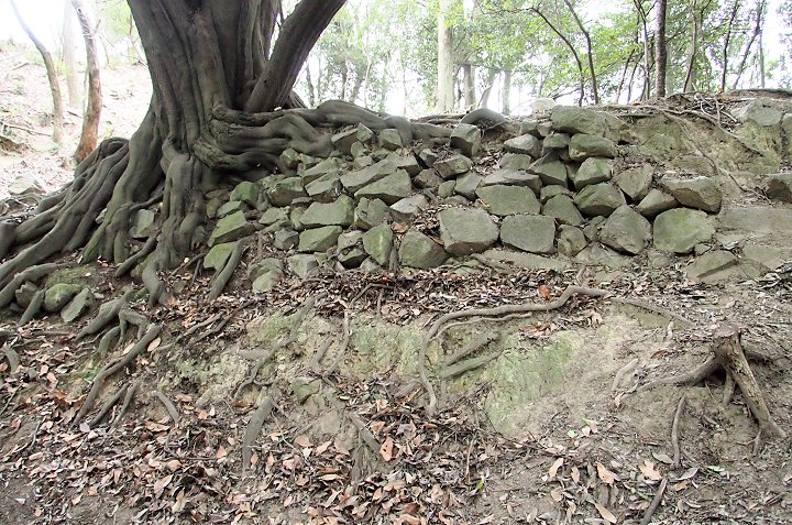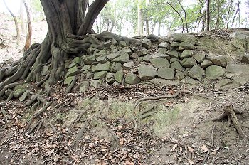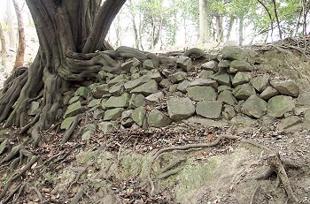 やって来ましたのが、山手銀山城の東曲輪群に残ります曲輪の側面に造られました長い石垣。この石垣は、山手銀山城を訪れます方々が、よく画像に納めておられます(^.-)☆ 勿論、GONsanもパチリです(^-^)/"