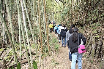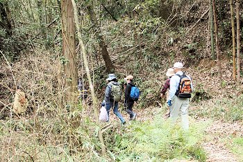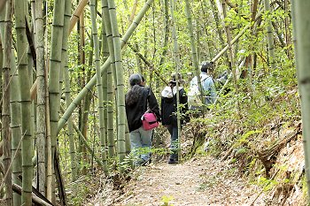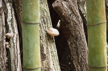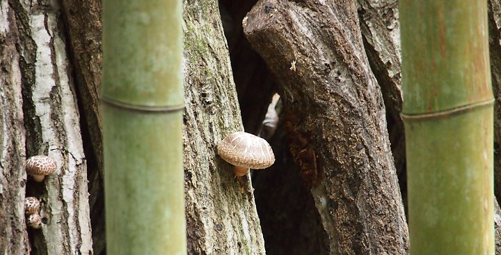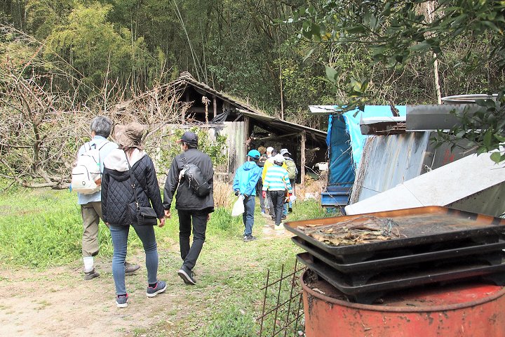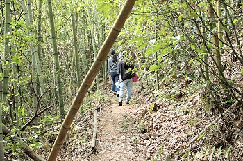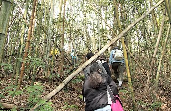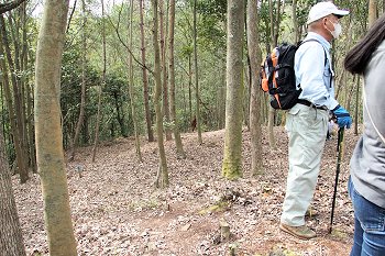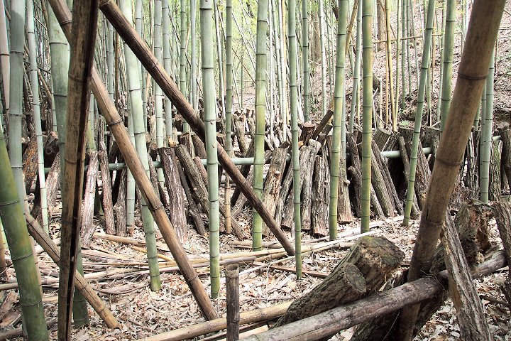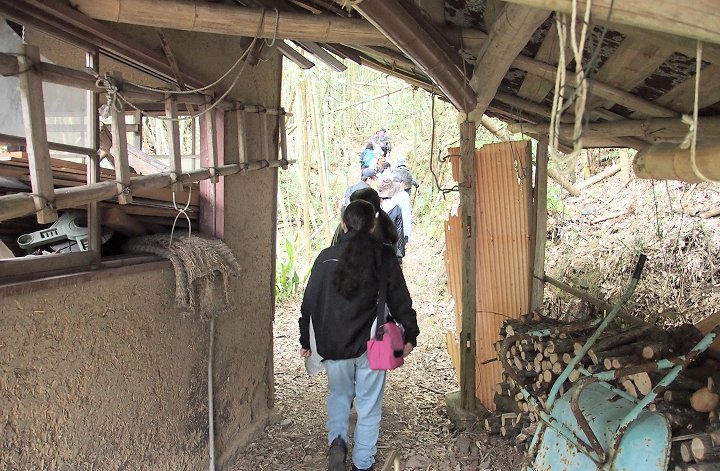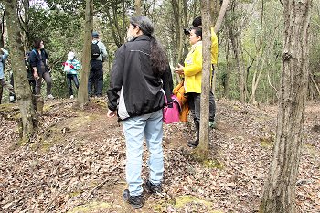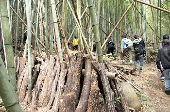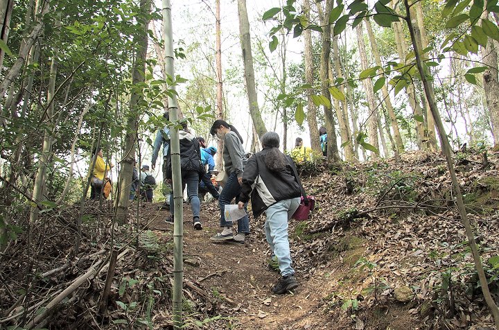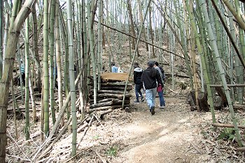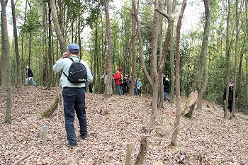 小屋を通り抜けますと竹藪の中を…そして、椎茸の栽培地を抜けますと、「大東第2古墳」にと到着です(^.-)☆