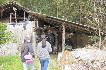 敷地内には、住んではおられないのでしょうけど住居らしき老朽の建物が存在で、それを横目に小屋の方へ直進です(^-^)//"