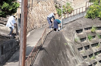 きっと、崖上の気になります箇所を洗い流すか何かを行っておられたものと思います。
