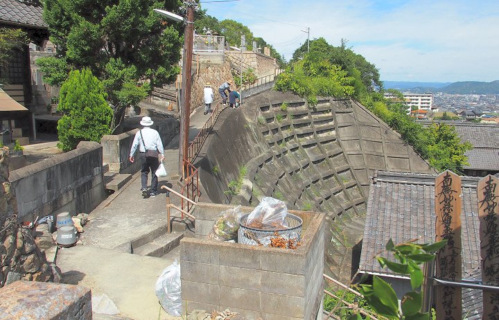 暫し観世音菩薩に手を合わせておりますと、付近で、「そんなとこに居たら、崖下に落ちてしまう!!」との声に振り向きますと、何と、ご高齢の女性が鉄製のフェンスを乗り越え崖上に(^-^;
