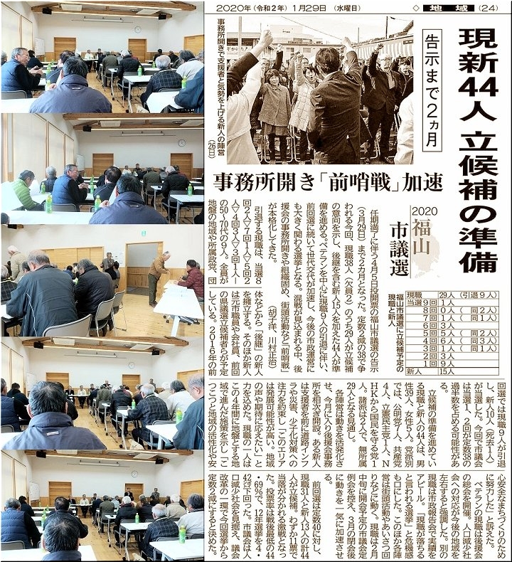 今朝の中国新聞sanの朝刊記事では、結局、当初の予定通り定数38議席に対して46人の立候補。…と言う事は、8名の落選ですから仲々の激戦ですネ。