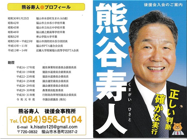 そして、晴れて当選のあかつきには、引き続き、福山市のより一層の発展に向け全力で注力下さいねぇ(^-^)//"