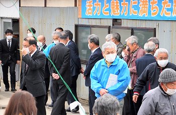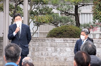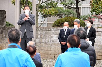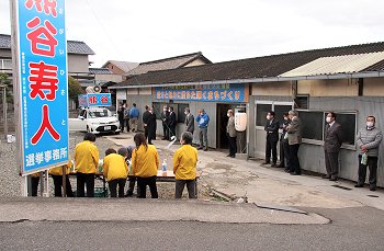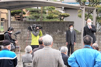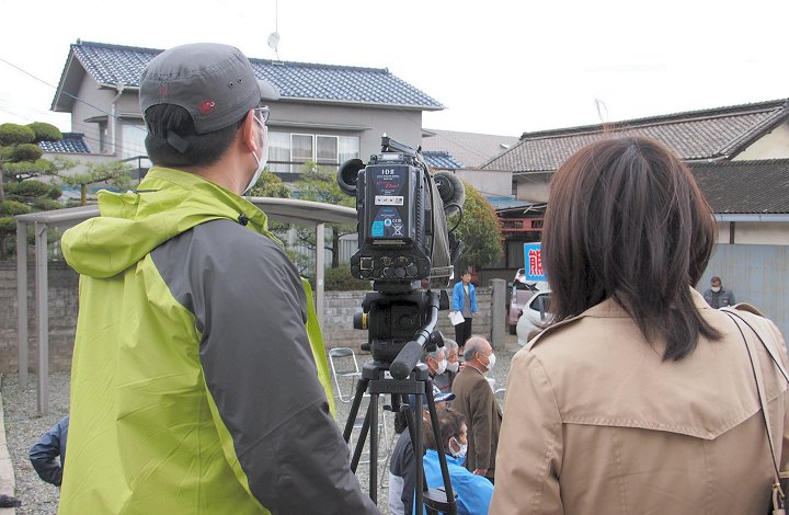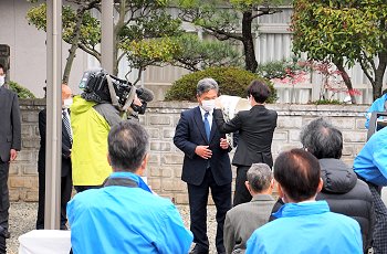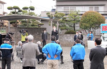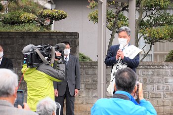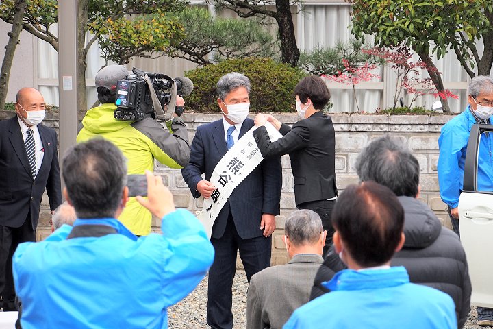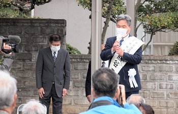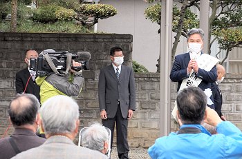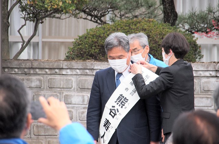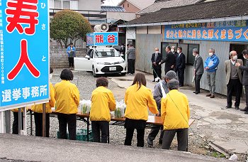 これは、某市議選候補の出陣式の一コマですけど、新型コロナウイルスの感染拡大の現況ですから、各陣営とも規模縮小での実施を余儀なくされていますようです。
