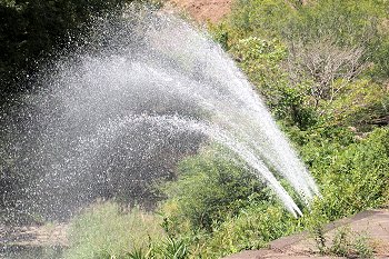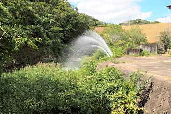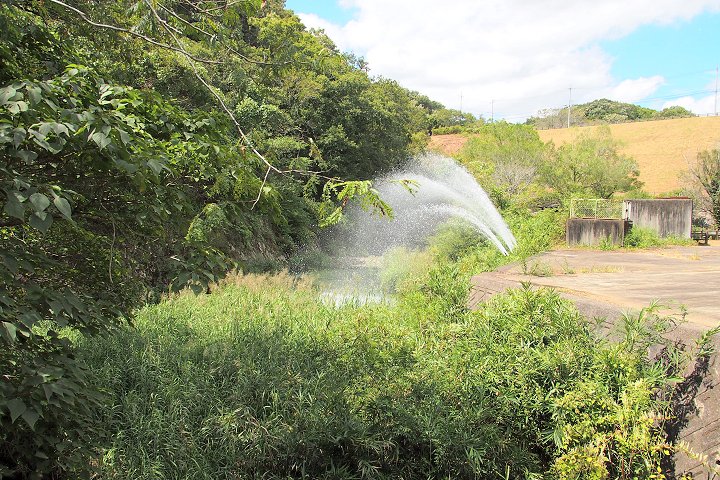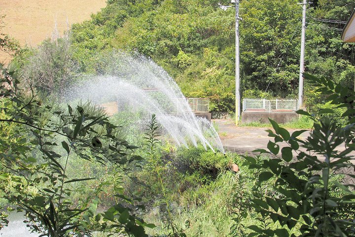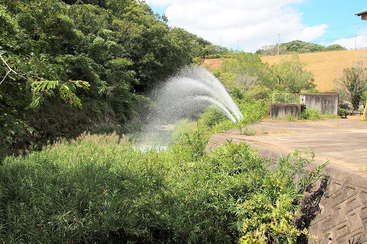 池周辺は公園として整備され、噴水のような放流設備もそれに合わせたものだと思います。