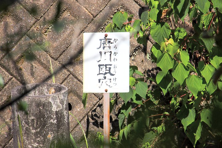 「甌穴とは川の急流で渦巻きが起こり小石が回転して岩石を削り込むもので、数万年をかけて生成されたと思われます。著名な2個の甌穴は、長径が80cmと70cm、深さが110cmもあります。」との事ですけど、「唐川甌穴」は、その「著名な2個の甌穴」の一つなのかも分かりませんネ。