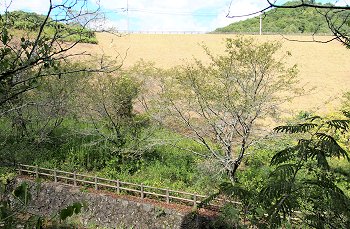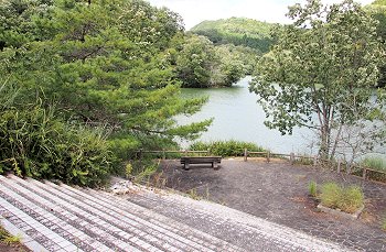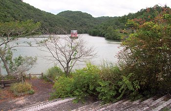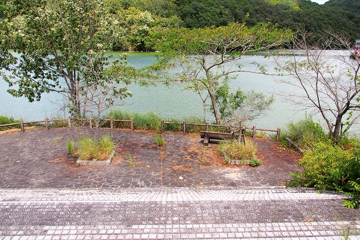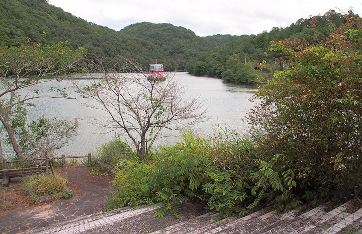 管理棟(美星畑地灌漑揚水機場)を通り過ぎますと、星田池の堤防(土手)を横目に散策続行です。
