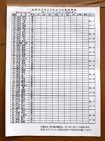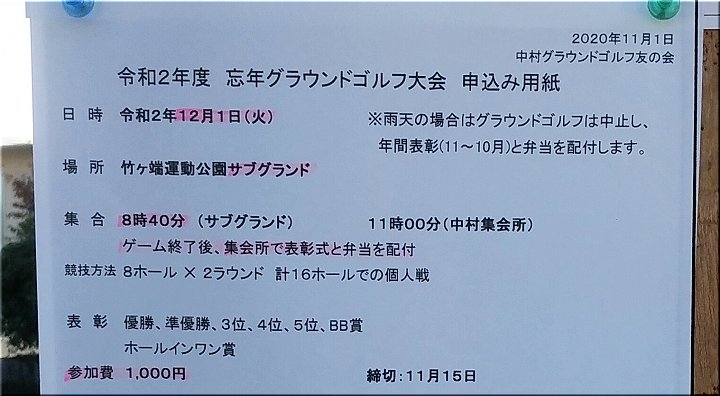 掲示文書に眼を向けておりましたら、「令和2年度・忘年グラウンドゴルフ大会」のご案内が…