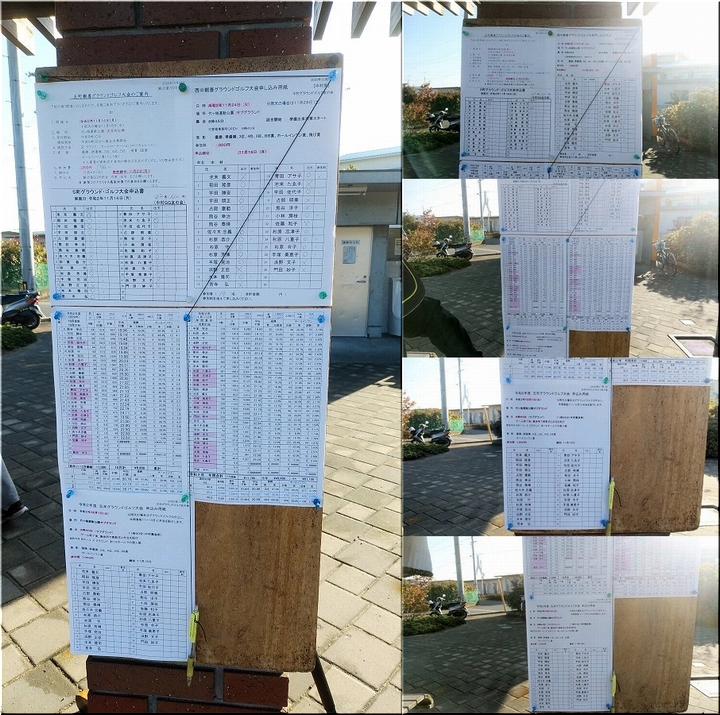G0Nsanは、4/1からこの「中村グラウンドゴルフ友の会」に仲間入りですから、早や7ヶ月経過。掲示板には、今年度(1〜10月)及び先月(10月中)の成績表の掲示もありました。