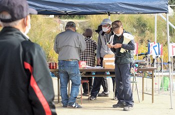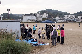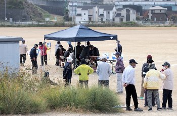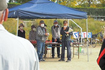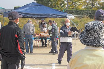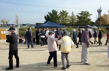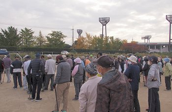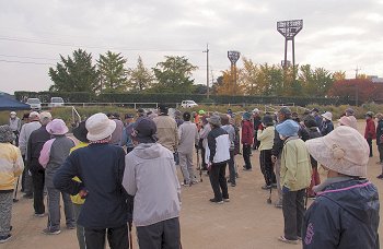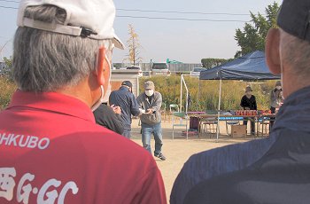 これは、今朝のグラウンドゴルフ開始前の一コマなんです(^.-)☆