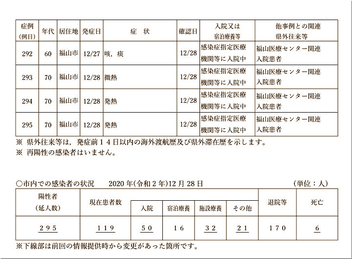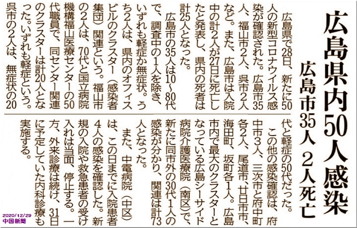 …と、こんな中国新聞sanの速報もありましたけど、12/29確認の追加分として5名の感染者を。