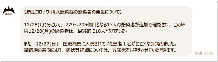 本日(12/30)午前中に、また福山市より、新たな5名のコロナ感染者の発表がありましたようですネ。