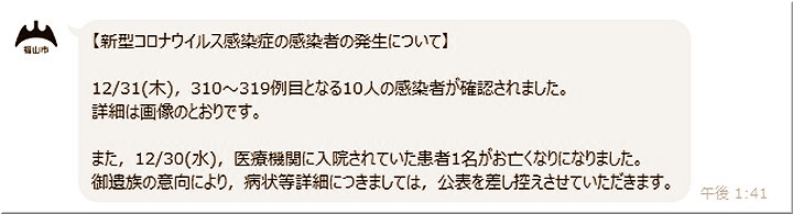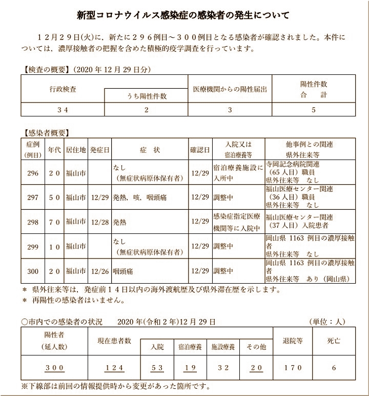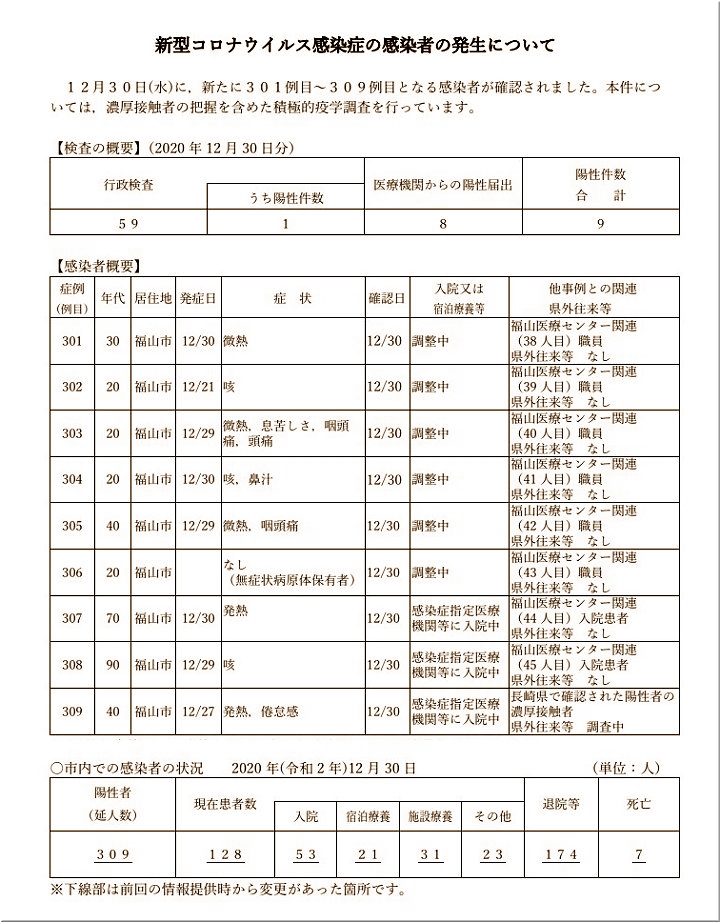 今日(12/30)また福山市より、5名の感染者の発表が…