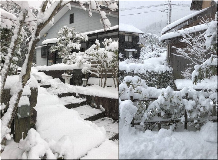 上段の画像が、嫁さんの弟から届きました若狭町の今朝の雪景色のようであります。昨夜から降り始めたようですけど、20〜30cmは積もっておりますねぇ〜