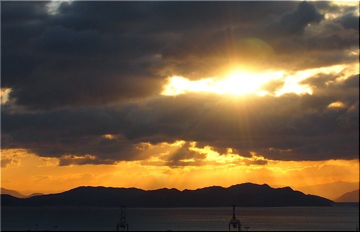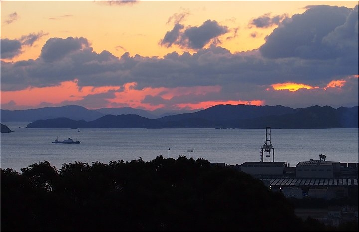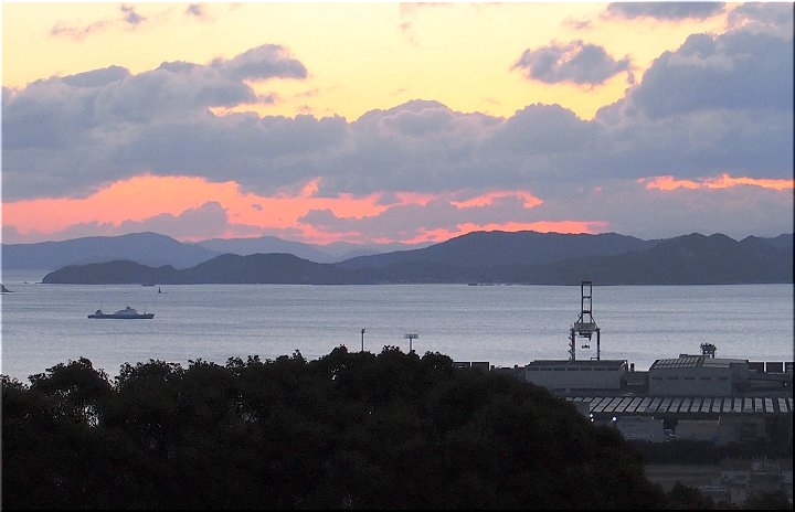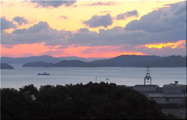 カメラの時計が合っていれば、7:17頃に、今にも顔を出しそうな東方の空に明るさが…