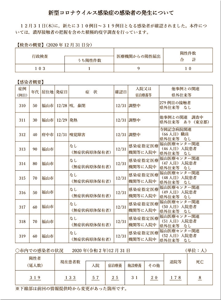 これで、福山市の感染者は319例目となります。そして、10名のうち7名の方が福山医療センター関連ですから、福山医療センターでは52人目の感染者となりますのですねぇ〜