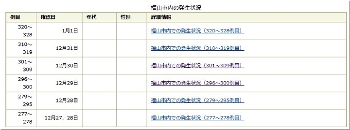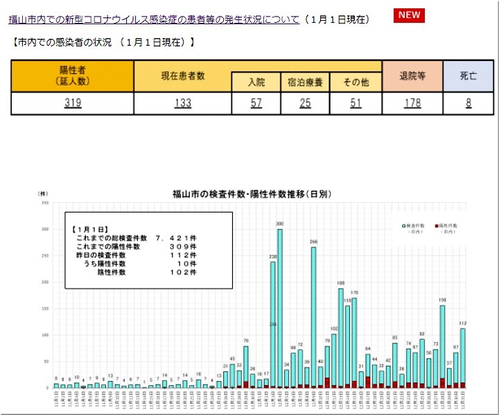 元旦早々、本日もまた福山市の発表、中国新聞sanの報道によりますと、福山市で10名の新たなコロナ感染者が確認されましたようであります(^-^;