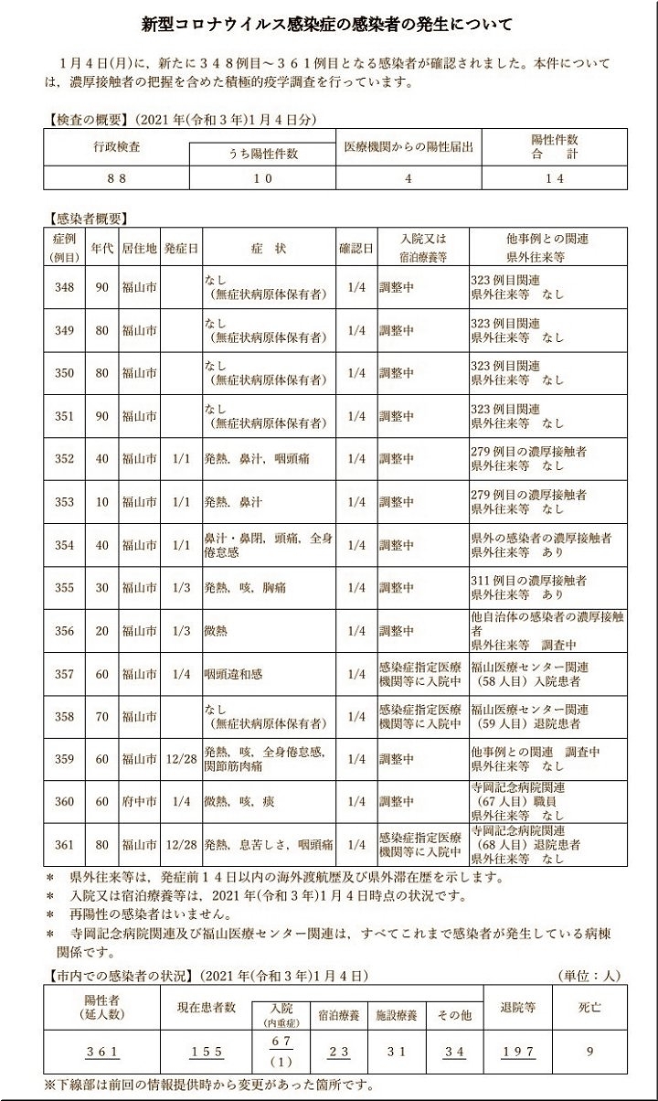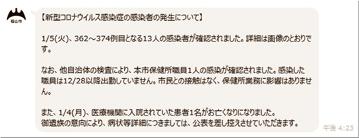1/5(火)には結局、福山市で13名のコロナ感染者が確認のようですネ…