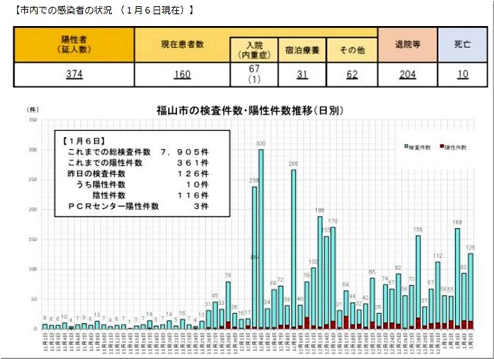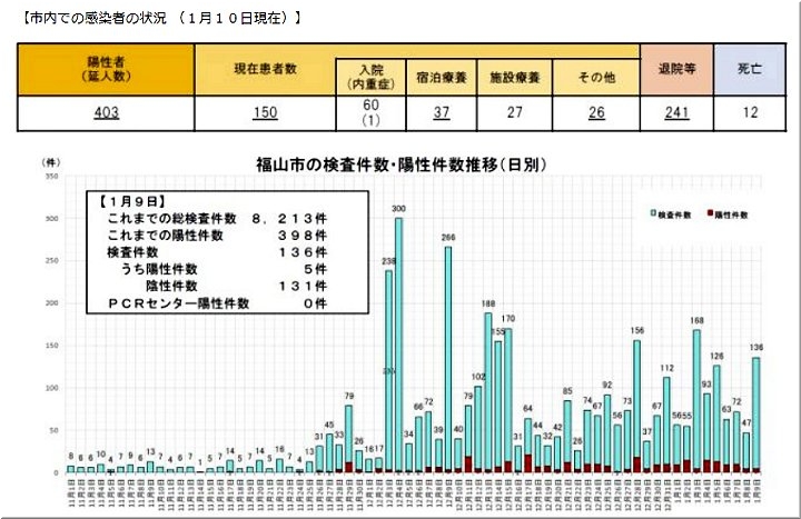 昨日・今日(1/10)と各5名、福山市で10名のコロナ感染者が確認です…