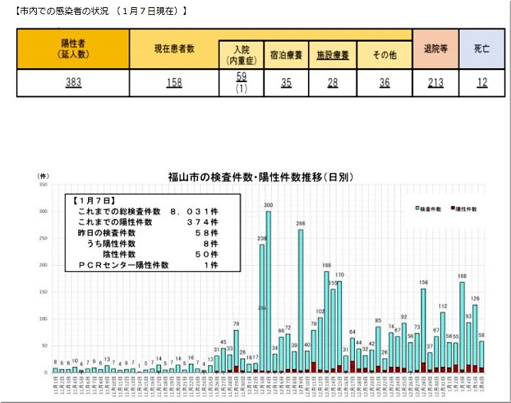 昨日(1/7)は、福山市で9名のコロナ感染者が確認です…
