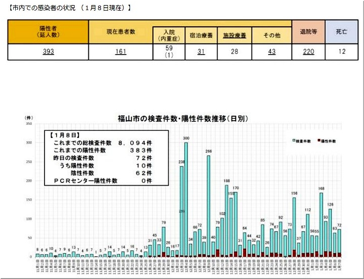 昨日(1/8)は、福山市で10名のコロナ感染者が確認です…