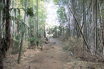 薬師如来堂を後にし先へと進んで行きますと、竹藪が…整備されました竹藪の中の参道を歩行続行しますと、大元神社の鳥居にと到達です。