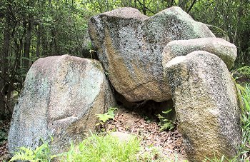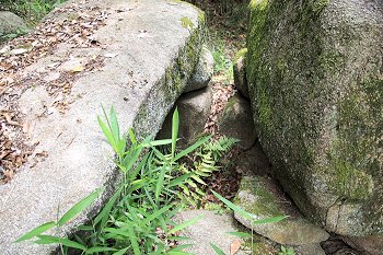 そして、見終えまして周辺を見廻しますと、まだ奥に続きます道が…その先には、道にはみ出しました大きな岩が…で、また進んでみます事に(^.-)☆