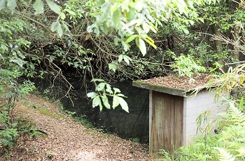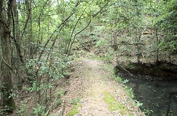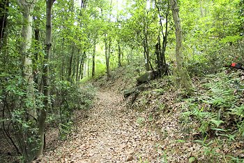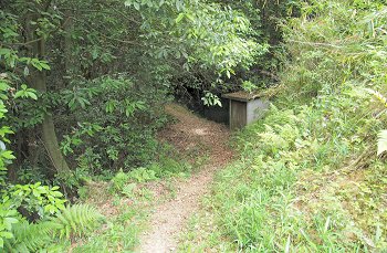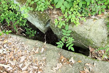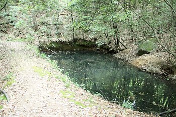 ガード手前の見学道入口から入り下って行きますと、小さな池が存在です。この小さな池を横目に進んで行きますと、早速、古墳が…