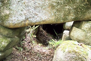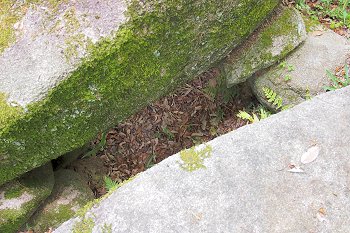 岩の向こう側には少しスペースが…岩の傍らには祠が存在です。