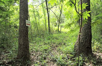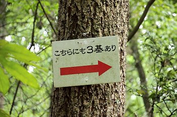 一つ目の古墳を過ぎて、また少し進んで行きますと、「こちらにも3基あり →」の案内表示です。