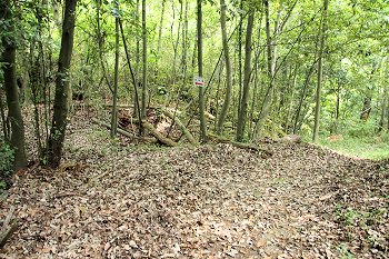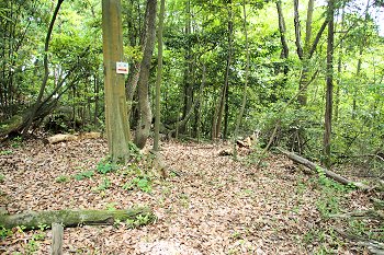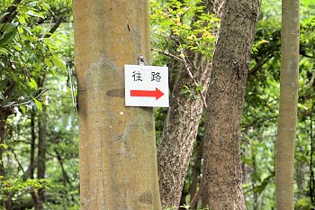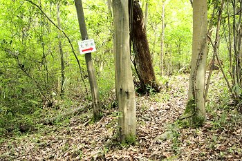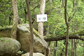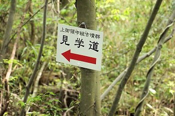 3基の古墳への入口まで戻って来ますと、案内標識に従い今度は左方向に進行です。「往路 →」の標識通り暫く道なりに進みますと、「古墳」の標識が…