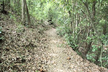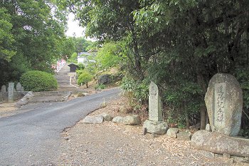 堂々公園に至る道から左手山中に入る道が目に入る。標柱があるのですぐに分かるが、この標柱には「左真言宗寒水寺 十一面千手観世音菩薩」とある。