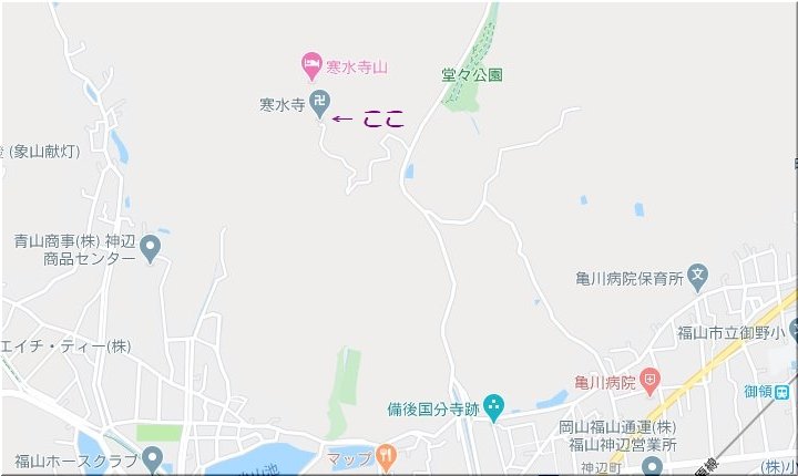 火災によって記録類が失われているが、神辺は古代・中世、備後南部の一つの中心地であった。寒水寺も、これを背景に栄えていたと思われる。