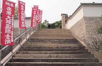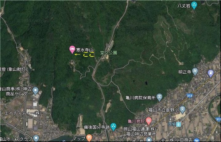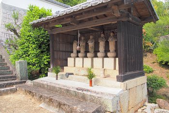創年代を証する白鳳期の碑仏数体が発掘されています。寺は海抜120mに位置して、眼下に神辺の町並みや福山市街地を望遠できます。