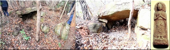 元々、寒水寺(神辺町西中条)の裏山に古墳群は確認されておらず、お寺の南の山に4基の横穴式石室墳からなる「寒水寺古墳群」が知られていました。