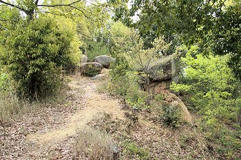 案内標識の『村堺岩 古墳の丘展望スポット →』に従い直進はせず、GONsanは右方向の「狐岩→」へと歩行続行です。が、次第にドンドン下って行きます事に…