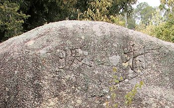 で、「古墳の丘展望スポット」に向かってみます事に。そうしましたら、また「村堺岩」が。よくよく見ますと、岩には『堺 村』と刻まれておりました。ほどなく「古墳の丘展望スポット」にも到達です。