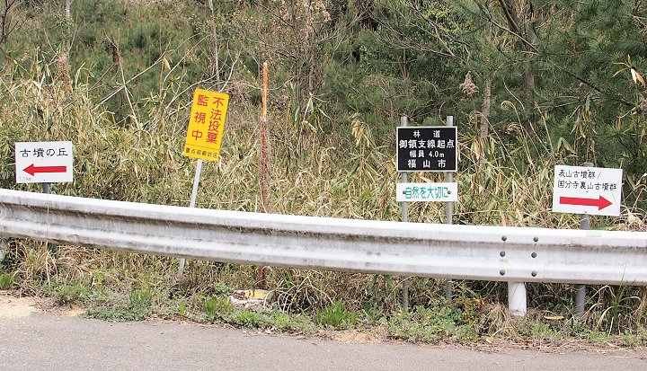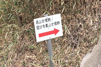 帰路に眼に入りましたのが、「表山古墳群/国分寺裏山古墳群 →」の案内表示板です。
