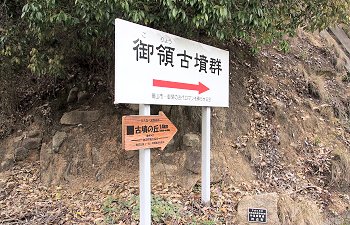 堂々川近くの「古墳の丘」への入口まで戻って来ますと、車を駐め「堂々川砂留」をパチリです。ついでに、「御領古墳群→」の案内標識も(^-^)