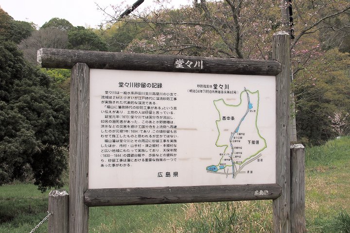 堂々川は一級水系芦田川支川高屋川の小支で、流域は2?と小さいが江戸時代に渓流砂防工事が実施された代表的に渓流である。